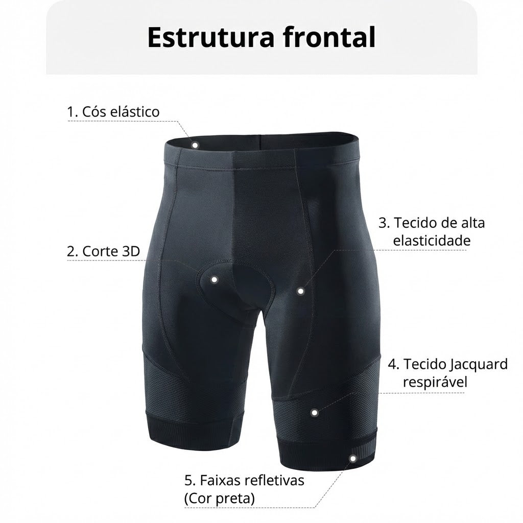As bermudas são feitos tanto para o mountain bike (MTB) ou ciclismo de estrada (Road bike) confeccionado em lycra e elastano, com corte anatômico para um ajuste perfeito . Para pedais de longa duração o forro em gel e a peça ideal para pedais de longa duração é confeccionado em tecido antibacteriano, prolongando a vida útil e evitando infecções na pele.