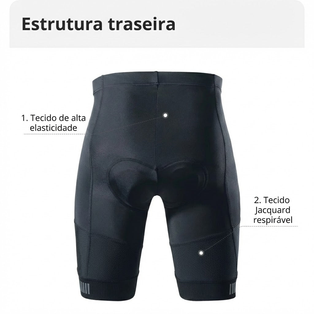 As bermudas são feitos tanto para o mountain bike (MTB) ou ciclismo de estrada (Road bike) confeccionado em lycra e elastano, com corte anatômico para um ajuste perfeito . Para pedais de longa duração o forro em gel e a peça ideal para pedais de longa duração é confeccionado em tecido antibacteriano, prolongando a vida útil e evitando infecções na pele.