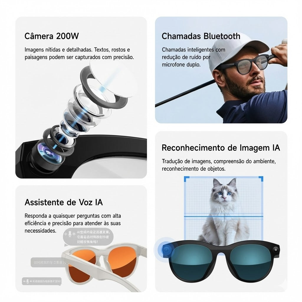 Com integração nativa ao ChatGPT 4 e lentes intercambiáveis, este equipamento transforma a maneira como você interage com o ambiente durante seus desafios. Seja para registrar a telemetria visual de um sprint ou para manter a comunicação com sua equipe técnica via assistente de voz, a tecnologia trabalha a favor da sua performance.